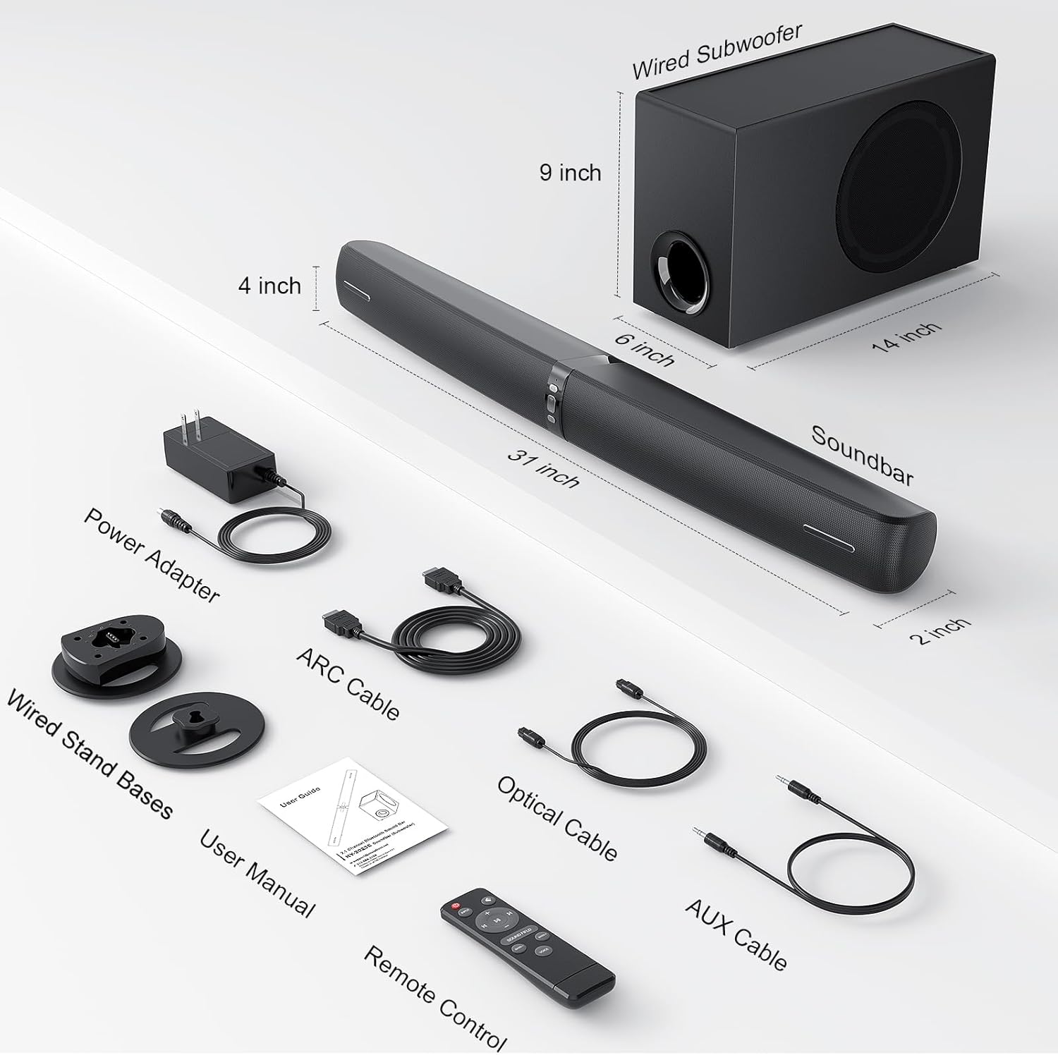 I only receive 2 small speakers, where is the sound bar? Wired subwoofer?