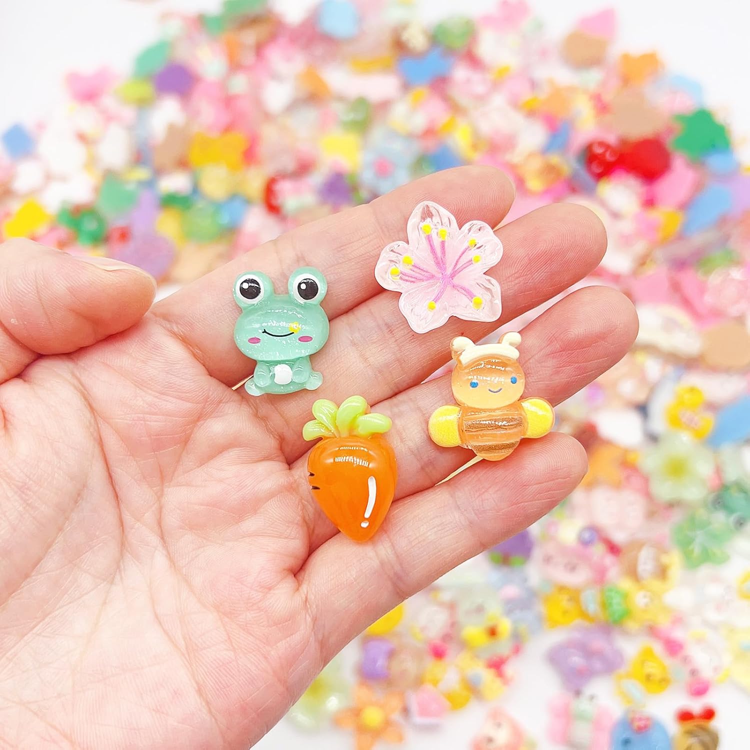 - Quantity : 120 pcs/package, The colors and styles randomly assigned, embellishments are carefully selected for you by each style, Such as bears,flowers, animals, fruits,etc. This set will not disappoint you.