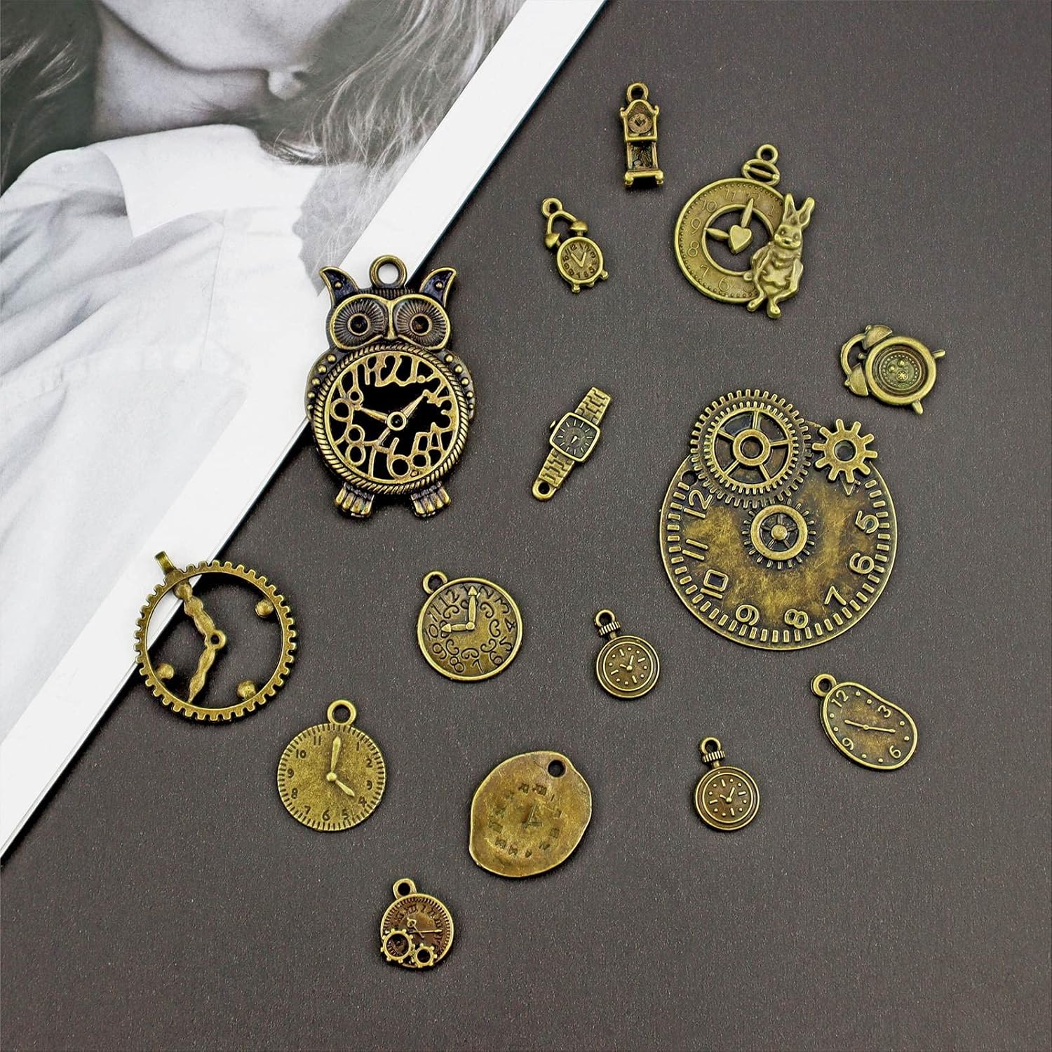 Bronze Vintage Clock Face Charms Pendants