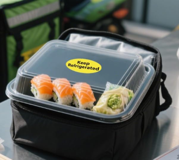 • These Refrigerated Stickers adhesive allows excellent adhesion to poly bags, boxes, bubble wrap, shrink wrap and pallets