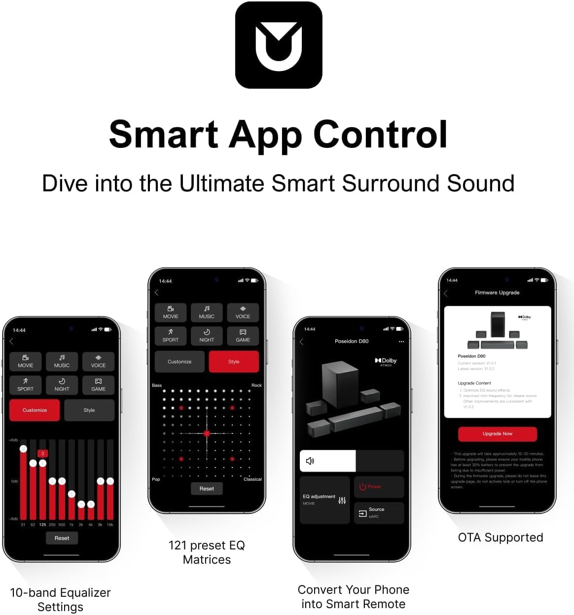 ULTIMEA 5.1ch Sound Bar with Dolby Atmos, Surround Sound System for TV, App Control, Home Theater Sound System, TV Soundbar with Subwoofer, 2 Surround Speakers, HDMI eARC/Opt/AUX/BT, Aura A50 Pro